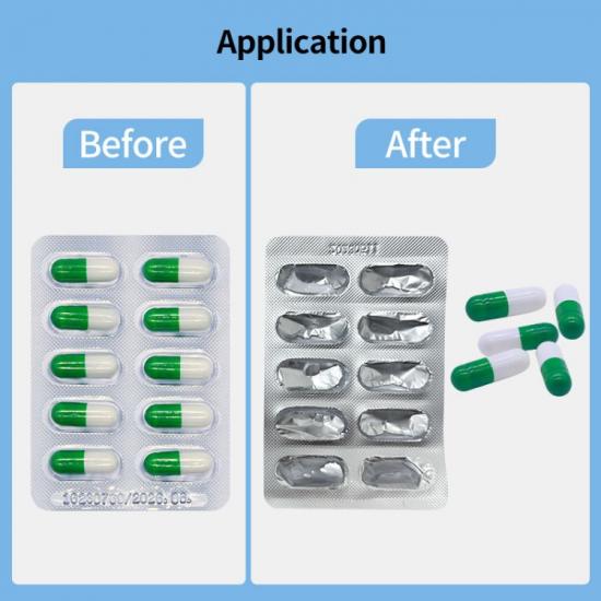 2. Traitement des produits défectueux : Lors de la production de médicaments, certains produits ne peuvent être commercialisés pour diverses raisons. Dans ce cas, la machine DeBlister peut jouer un rôle important en séparant facilement le médicament de son emballage blister pour un traitement ultérieur.