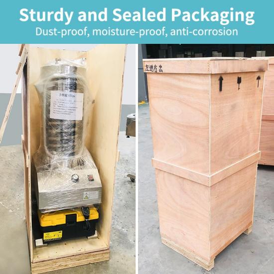 1. Système d'alimentation : Une trémie tampon inclinée et un alimentateur vibrant à vitesse réglable (fréquence de 50 à 300 Hz) assurent une distribution uniforme des comprimés dans la chambre de traitement, évitant ainsi les dommages causés par l'accumulation et l'écrasement. Les modèles haut de gamme sont équipés d'une vanne d'alimentation à commande magnétique, permettant la liaison de production avec la presse à comprimés rotative en amont.